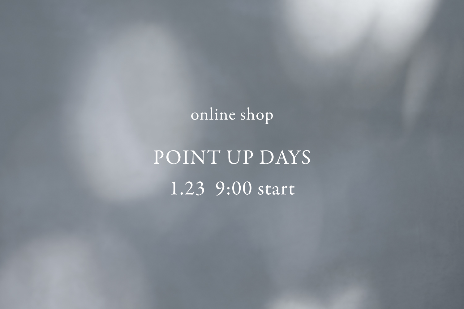 1月23日(金)朝9時より期間限定で、オンラインショップにて「POINT UP DAYS」を開催いたします。