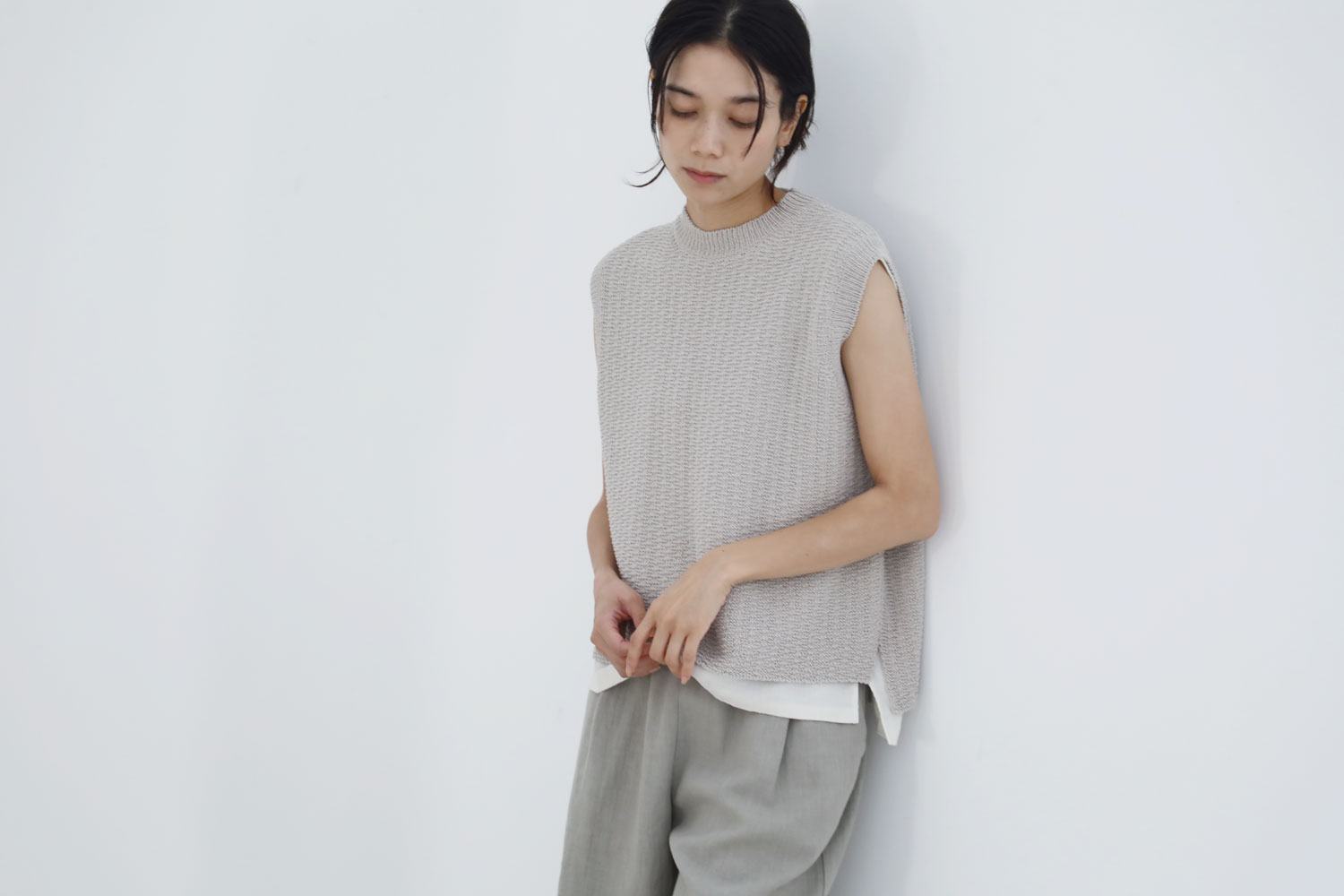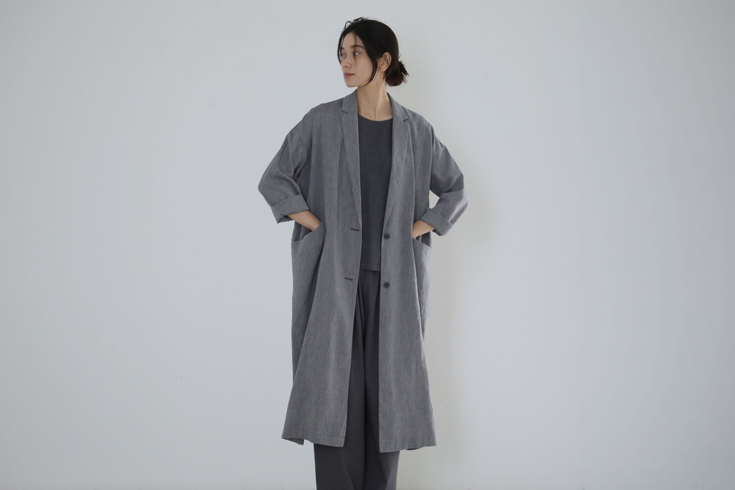 だんだんと季節が春めき、草木の芽もほころびはじめました。リネンと和紙を合わせたシャンブレー生地のさらりと羽織れるロング ジャケットや 、コットンとリネンをブレンドした、柔らかな糸で編み上げられたニットなど、春の新作が入荷しました。